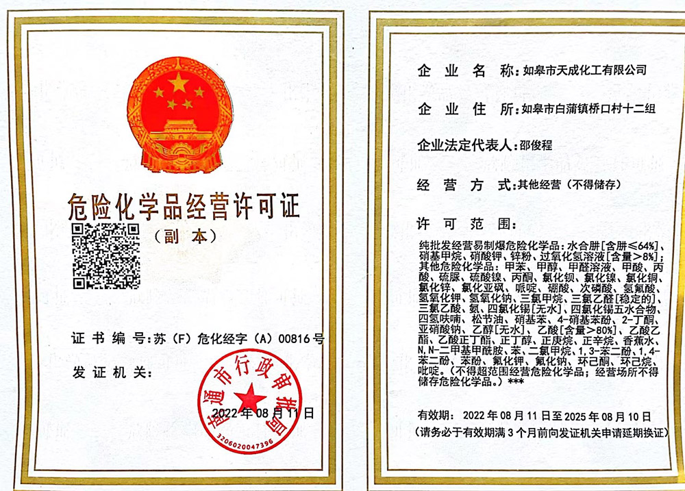 歡迎訪問如皋市天成化工有限公司官方網站